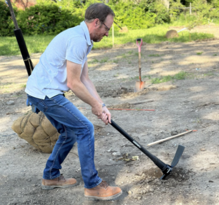 Next up, it was time for our landscaping company to lay out sections for the larger Community Garden space. This included sectioning off areas that would serve as perennial beds, walking paths, open areas, and grassy areas.